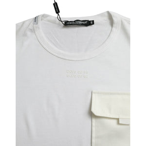 تي شيرت دولتشي آند غابانا الأنيق المصنوع من القطن باللون الأبيض بياقة دائرية