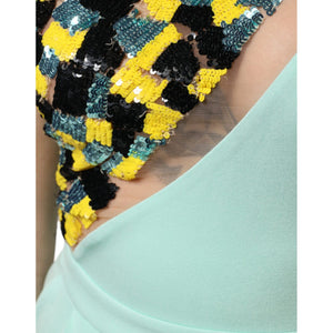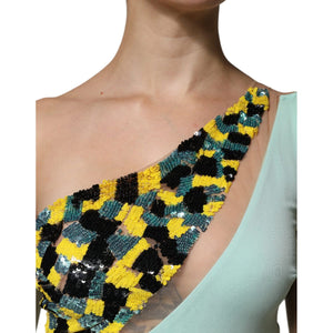 Elisabetta Franchi Mint Green One Shoulder Long Jumpsuit Dress