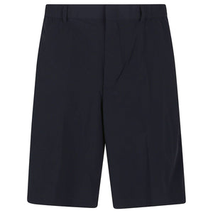 navy blue concealed front fastening elasticated waistband side pockets rear pockets lightweight design straight silhouette Nyon bermuda shorts Size and Fit - This piece fits true to size. We recommend you get your regular size. Model is 1,84m / 6ft 1in wearing size 48 (IT)