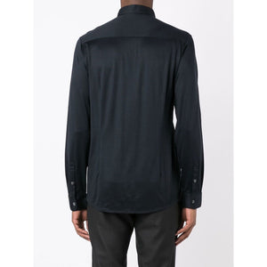 Navy blue cotton-lyocell blend straight-point collar front button fastening long sleeves buttoned cuffs curved hem Cotton shirt Size and Fit - This piece fits true to size. We recommend you get your regular size. Model is 1,84m / 6ft 1in wearing size M