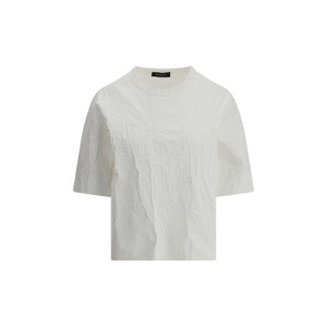 Fabiana Filippi’s cotton T-Shirt features a crackle effect design that covers the entire surface, creating a unique and interesting visual effect. The monochrome pattern gives the garment an elegant and versatile look that can be easily combined with various styles. The cotton fabric ensures comfort and freshness, making this T-shirt ideal for a casual-chic look, with a touch of originality thanks to the crackle effect.