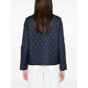 navy blue front hook and eye fastening concealed front press-stud fastening two front flap pockets long sleeves 3Ganci quilted jacket Size and Fit - This piece fits true to size. We recommend you get your regular size. Model is 1,75m / 5ft 8in wearing size S