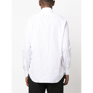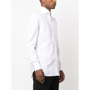 white cotton cutaway collar front button fastening long sleeves buttoned cuffs curved hem Napoli cotton shirt