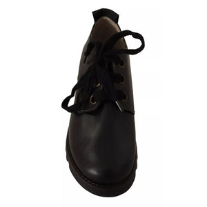 FLY LONDON Black Leather Low Top Lace Up Women Oxford Shoes
