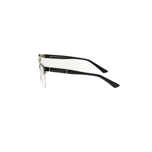Dare to dazzle with Frankie Morello’s chic interpretation of the iconic Clubmaster model eyeglasses. With bold black upper profiles and standout geometric patterns on the temples, these frames redefine the essence of contemporary sophistication. Perfectly crafted in Italy, these glasses merge acetate’s comfort with the subtle gleam of metallic fibre, creating an ensemble that’s as resilient as it is ravishing. Make your mark in the world of fashion, with a touch of Frankie Morello’s rebellious spirit.