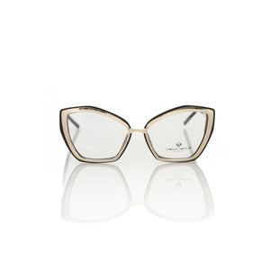 Elevate your style with a flutter of sophistication in these Frankie Morello butterfly model eyeglasses. Flaunting a striking gold-colored exterior and chic black interior, these frames cater to the fashion-forward and confident. Italian craftsmanship meets contemporary design, making them the perfect accessory to accentuate your bold personality.