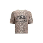 Ganni’s Leopard print short sleeve Sweater combines grit and irony in a unique design. Featuring a crew neck and ribbed hems, it is distinguished by an animal print and the brand’s iconic signature on the front, accompanied by the words "Have a Nice Day." A bold garment, perfect for expressing style with lightness.
