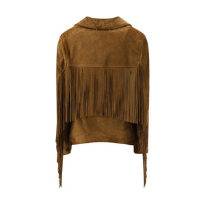 Soft suede Jacket by Golden Goose, featuring classic lapels and front button fastening. It features two welt pockets applied on the front and leather fringes applied on the front, back and sleeves, which add a touch of character and movement to the garment.