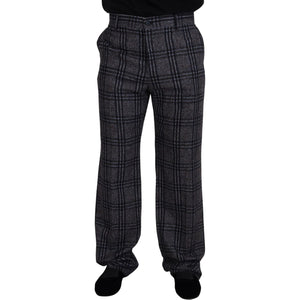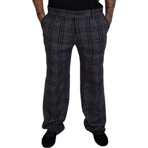 بنطلون دولتشي آند غابانا الأنيق المصنوع من مزيج الألبكة والمربعات الرمادية