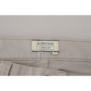 اكتشف المزيج المثالي من الأناقة والراحة مع هذا البنطلون الرمادي المذهل من Jeckerson. صُنعت هذه السراويل بخبرة من مزيج القطن والإيلاستين الفاخر، ولا تعد بمظهر جمالي مذهل فحسب، بل أيضًا بملاءمة لا تشوبها شائبة وحرية الحركة. تضيف اللمسة الفاخرة وتفاصيل الشعار الدقيقة لمسة من التفرد إلى خزانة ملابسك. مثالي للرجل المميز الذي يتطلع إلى الارتقاء بأسلوبه اليومي.