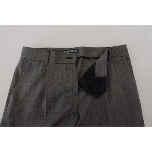 بنطلون من الصوف البكر من دولتشي آند غابانا بخصر مرتفع ومربعات