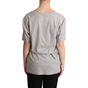 تي شيرت دولتشي آند غابانا الأنيق المصنوع من القطن بفتحة رقبة على شكل حرف V باللون الرمادي
