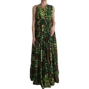 اكتشفي الأناقة والرقي مع فستاننا الطويل المذهل بدون أكمام على شكل حرف A، والذي يتميز بطبعة أوراق الموز الجذابة. هذه القطعة الفاخرة، المصنوعة من مزيج الحرير الفاخر، هي شهادة على الحرفية الرائعة والأسلوب المرادف لـ Dolce & Gabbana. مثالي للمناسبات الخاصة، فهو ينضح بسحر خالد يضمن الإدلاء ببيان.