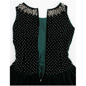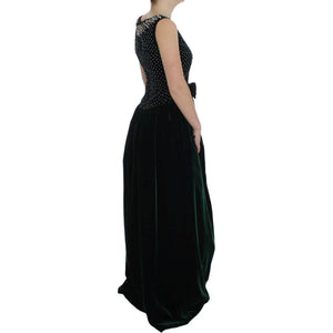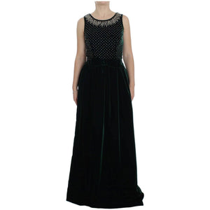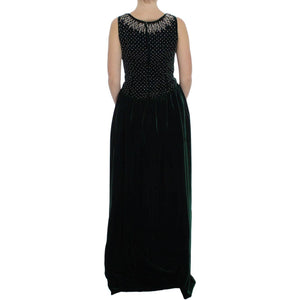 فستان ماكسي من دولتشي آند غابانا من المخمل والكريستال باللون الزمردي الساحر