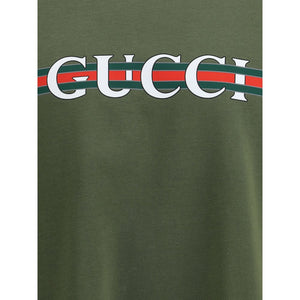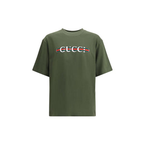 Cotton T-Shirt by Gucci with an essential and recognizable design. Featuring a classic ribbed crew neck, it features the iconic contrasting monogram printed on the front, a distinctive detail that enhances the garment with a touch of timeless style. A casual must-have to complete your wardrobe with contemporary elegance.