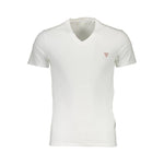Step into the world of effortless style with the signature Guess Jeans super slim short-sleeved t-shirt. Designed with a sharp “V” neckline, this immaculate white tee boasts a tasteful logo application that embodies the brand’s iconic appeal. Crafted from a blend of 95% cotton and 5% elastane, it promises both comfort and a flattering fit that accentuates your silhouette. Perfect for the bold and fashionable individual ready to make a trendy statement.