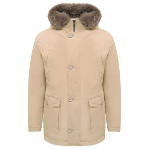 Herno Beige Nylon Men Jacket with Fur-Trimmed Hood