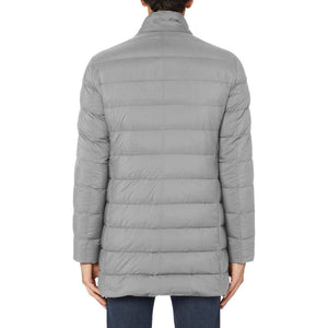 Elevate your outerwear game with the Herno Medium Down Jacket, a true embodiment of contemporary sophistication. Crafted in a refined gray quilted technical fabric, this piece offers exceptional warmth without sacrificing style. The padded lining ensures comfort while the dual front closures – buttons and a concealed zip – promise practicality and a sleek look. Sporting flap front pockets and chic vertical chest pockets, it’s versatile enough for any setting. The finishing touch? A removable high collar for adaptable elegance. Step out in this Herno masterpiece, where functionality meets high fashion seamlessly.