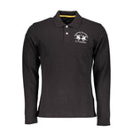 Exude effortless sophistication with this finely crafted long-sleeved polo shirt from La Martina. Designed for the discerning gentleman, this regular-fit polo boasts a sleek black hue complemented by striking contrast details. The meticulous embroidery adds a touch of class, while the iconic logo affirms the shirt’s premium heritage. Experience comfort blended with style, ideal for any casual or smart-casual ensemble.
