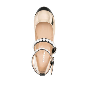 black/gold-tone calf leather patent finish two-tone design buckle-fastening ankle strap stud detailing round toe branded leather insole flat leather sole rubber outsole Leather bicolor ballets Size and Fit - Heel 0,4 in / 1 cm