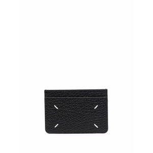 Black leather asymmetric card holder from Maison Margiela featuring grained texture, tonal stitching and card slots. Leather credit holder Size and Fit - Width 3,94 in / 10 cm Height 2,76 in / 7 cm