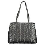 Elevate your ensemble with the timeless elegance of Valentino Bags. This sleek, black handbag is the perfect accessory for the modern fashionista on the move. Designed with practicality in mind, it features two comfortable shoulder handles for ease of carrying. The spacious central pocket, coupled with an additional internal pocket, keeps your essentials organized while providing quick access to your phone with dedicated internal spaces. The zip and magnet closure ensures your belongings are secure with a dash of sophistication. The contrasting details and the iconic Valentino logo add an air of luxury, while the commitment to sustainability is evident with its recycled materials. Make a bold statement as you step out with this trendy Valentino masterpiece.