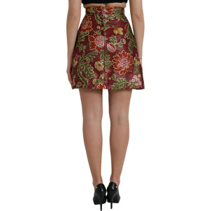 تنورة قصيرة من الجاكار بنقشة زهور باللون العنابي من دولتشي آند غابانا