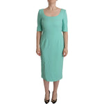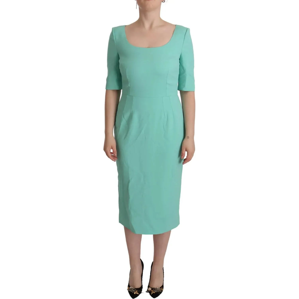 فستان دولتشي آند غابانا متوسط الطول بفتحة رقبة مربعة وأخضر نعناعي