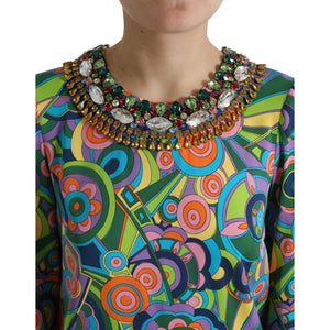 فستان قصير من الحرير متعدد الألوان بتصميم هندسي من دولتشي آند غابانا