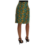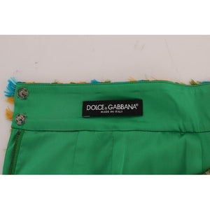 انغمسي في براعة دولتشي آند غابانا الرائعة مع هذه التنورة المذهلة ذات الخصر العالي من الجاكار الأخضر. مثالية لخلق صورة ظلية أنيقة، تتميز هذه التنورة بنمط متعدد الألوان نابض بالحياة وبطانة مطاطية من الحرير الأخضر الفاخر لضمان الأناقة والراحة. صُممت هذه القطعة وصُنعت في إيطاليا، وهي تمثل تمثيلاً حقيقيًا للأزياء الراقية.