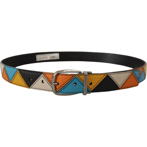 حزام جلدي متعدد الألوان أنيق من دولتشي آند غابانا مع مشبك فضي