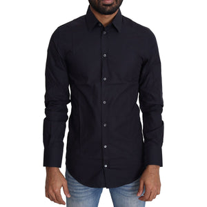 قميص دولتشي آند غابانا الرسمي ذو المقاس النحيف باللون الأزرق الداكن من سلسلة الذهب