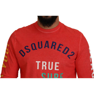تي شيرت Dsquared² برتقالي اللون بطبعة ملونة وأكمام طويلة