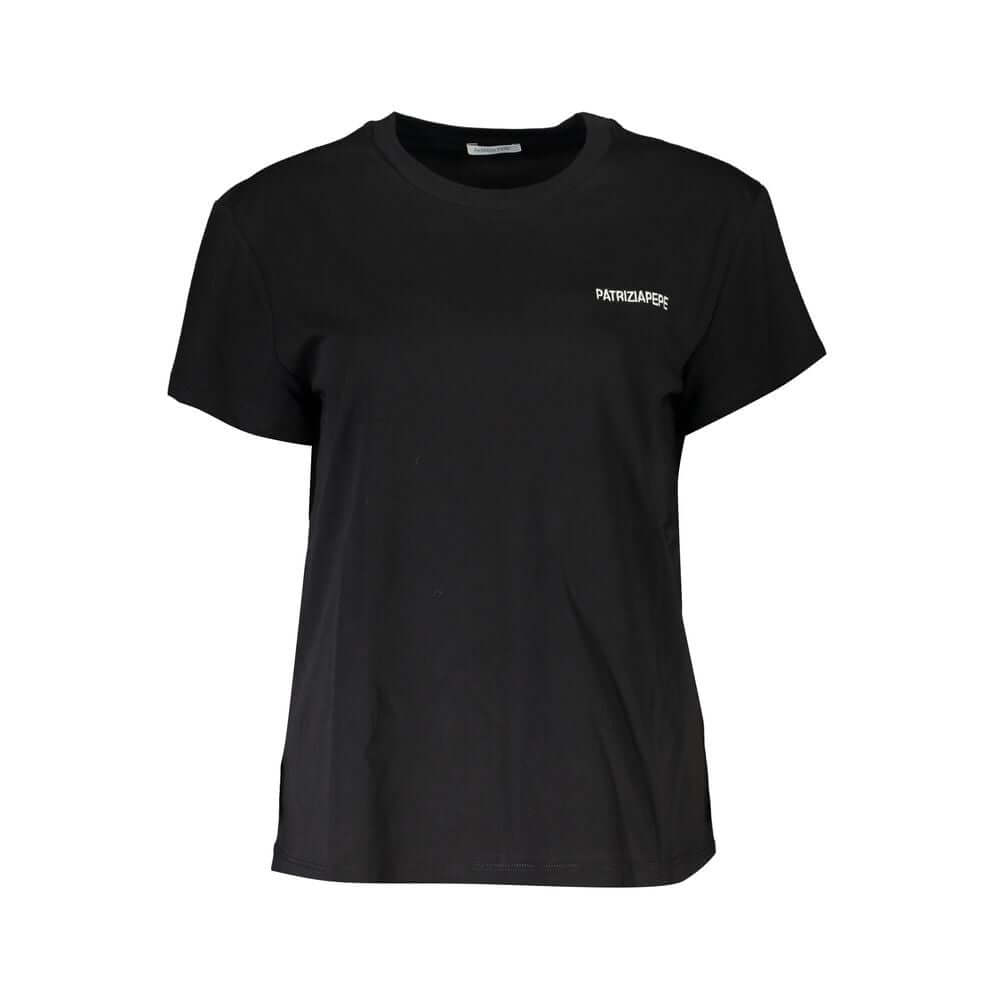 Embrace your bold fashion sense with this Patrizia Pepe short sleeve T-shirt. Crafted from high-quality organic cotton, it boasts a sleek black hue that commands attention. The crew neck design is elevated with intricate embroidery, while the iconic Patrizia Pepe logo adds a trendy stamp of sophistication. Perfect for those who want to make a statement with their style.