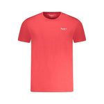 Elevate your daily style with the Pepe Jeans Short Sleeve T-Shirt. This slim-fit red tee is the epitome of cool comfort, featuring a classic crew neck and a bold, eye-catching print adorned by the Pepe Jeans logo. Crafted from a blend that boasts 95% soft cotton and 5% elastane, it ensures flexibility and a perfect fit. Proudly originating from Bangladesh, it’s a sustainable choice for the fashion-forward individual. Embrace the blend of quality and trendy design with this statement piece.