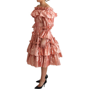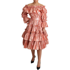 فستان دولتشي آند غابانا الوردي المعدني المكشكش الأنيق