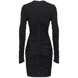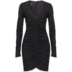 Pinko tight-fitting sheath dress in viscose crepe with gathered waist on the front, V-neck, concealed zip fastening on the back