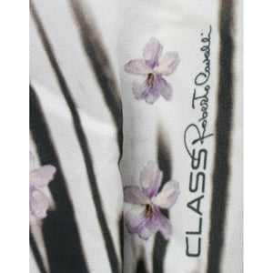 فستان كافالي الأنيق من الجيرسي المزهر باللون الأرجواني