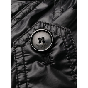 shoulder-pad oversized trench coat from SAINT LAURENT featuring jet black, storm flap, shimmer finish, epaulettes, shoulder pads, long collar, front button fastening, long wide sleeves, belted cuffs and ankle-length. Nylon cloak coat Size and Fit - This piece fits true to size. We recommend you get your regular size. Model is 1,75m / 5ft 8in wearing size 1 (NUM)