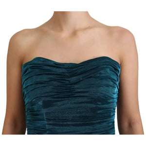 فستان دولتشي آند غابانا من مزيج الحرير باللون الأزرق بدون حمالات