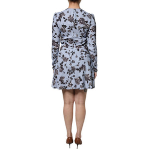 Valentino Light Blue Floral Long Sleeves A-line Mini Dress