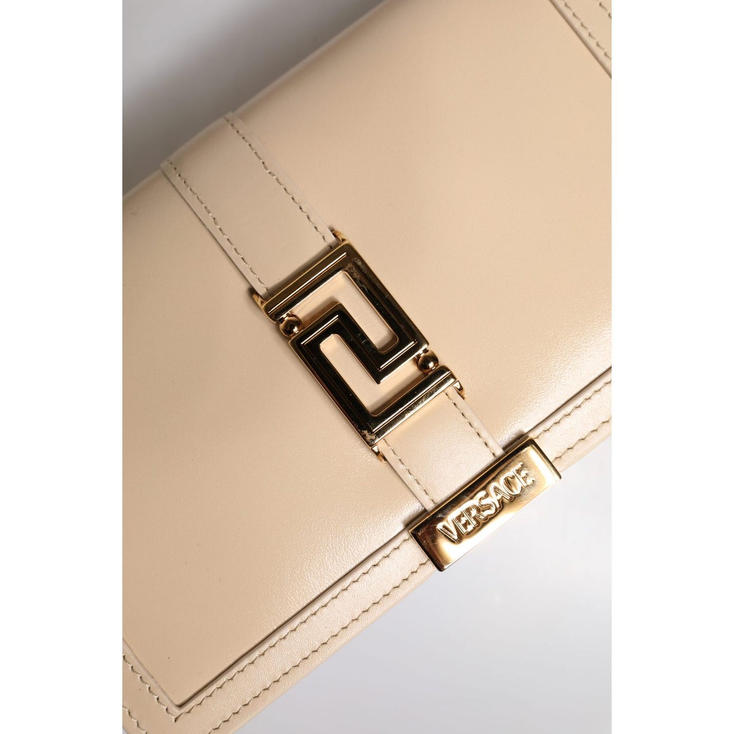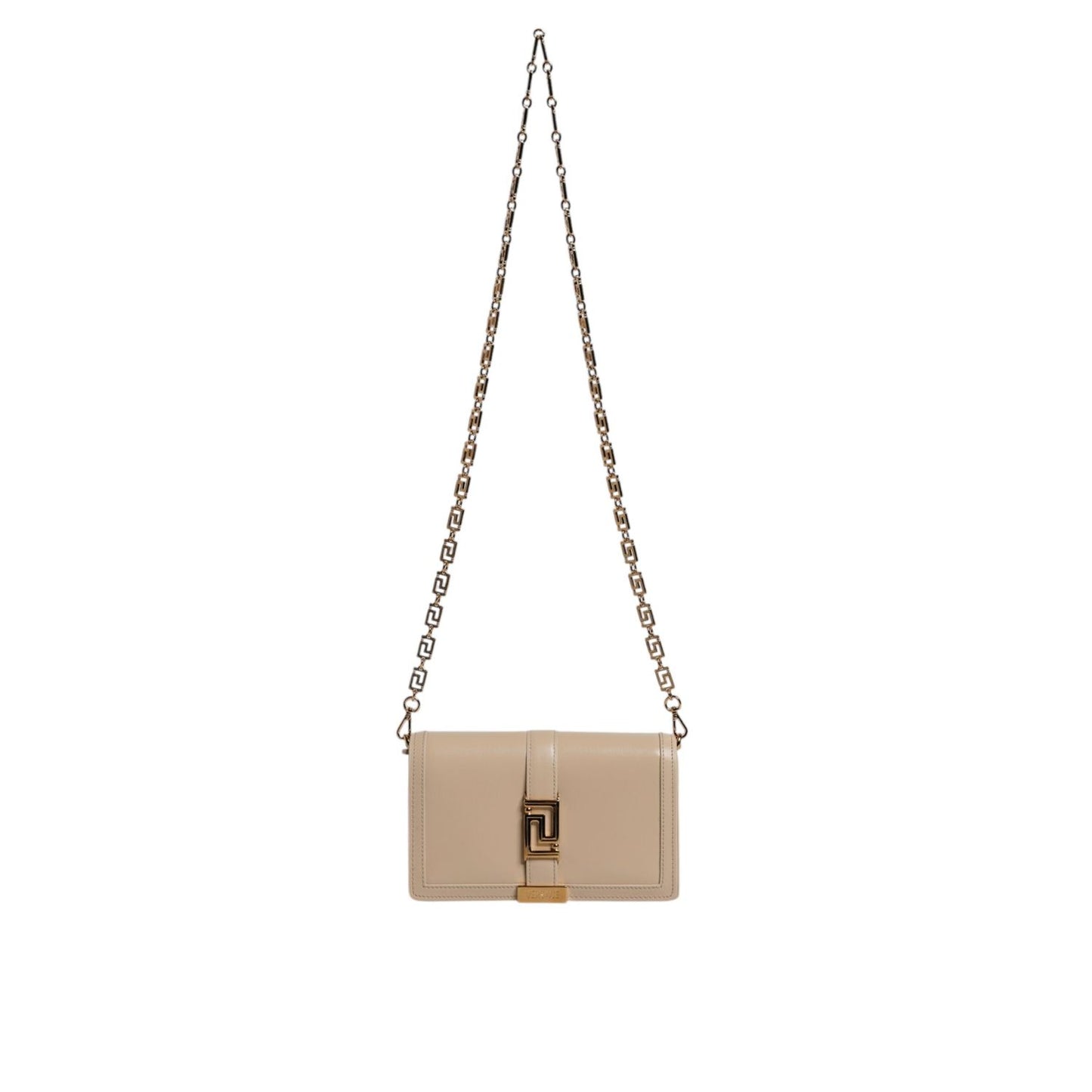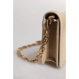 Versace Beige Gold Chain Calf Leather Wallet Crossbody Bag