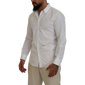 قميص رسمي بأكمام طويلة وياقة من القطن باللون الأبيض من Dsquared²