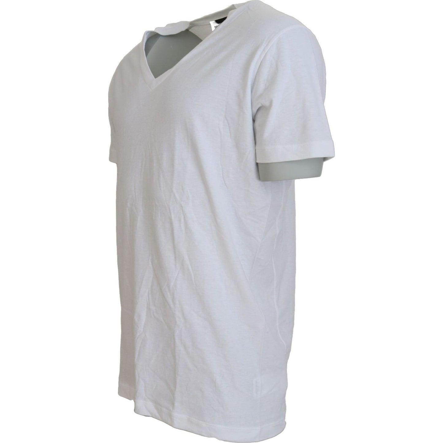 تي شيرت Dsquared² أبيض من القطن والكتان بأكمام قصيرة ورقبة على شكل حرف V