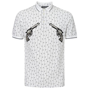 White Piquet Polo shirt with Dolce & Gabbana Allover Print. Allover micro flower print, shirt collar, button closure, Pistola embroidery applied on sides. Composition: 100% Cotton. Inner Sku: 24SET03