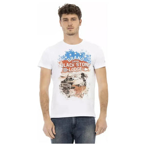 تي شيرت رجالي من القطن باللون الأبيض من Trussardi Action