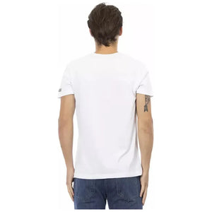 تي شيرت Trussardi Action للرجال من القطن الأبيض بفتحة رقبة على شكل حرف V