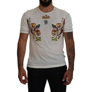 تي شيرت دولتشي آند غابانا الأنيق المصنوع من مزيج القطن والحرير باللون الأبيض