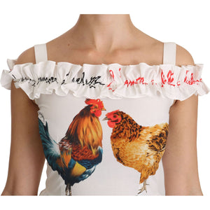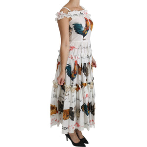 فستان ميدي أنيق بطبعة الديك باللون الأبيض من دولتشي آند غابانا