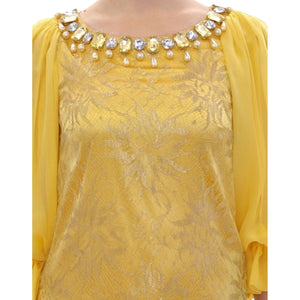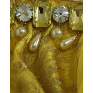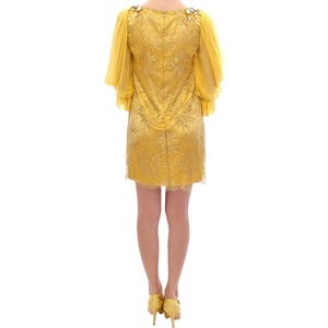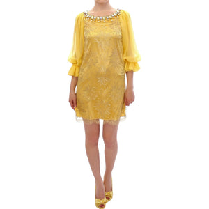 فستان قصير من الدانتيل الأصفر مزين بالكريستال من دولتشي آند غابانا